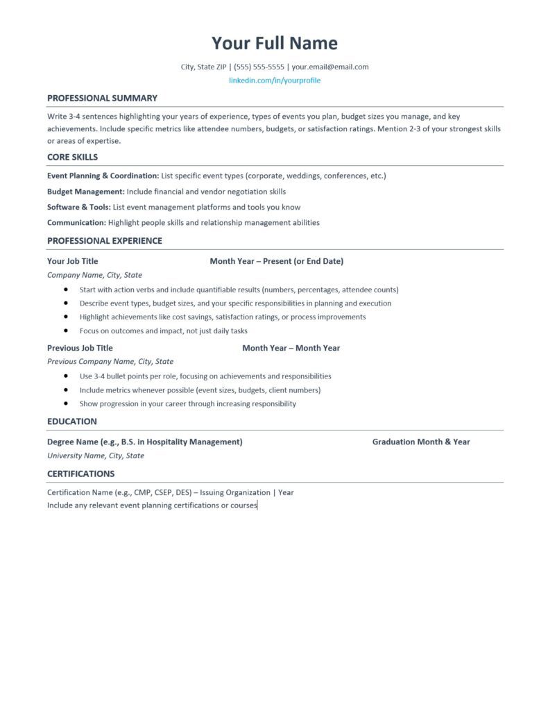 For those transitioning into event planning from other fields, check out our guide on how to write a resume with no experience to learn how to highlight transferable skills effectively.
