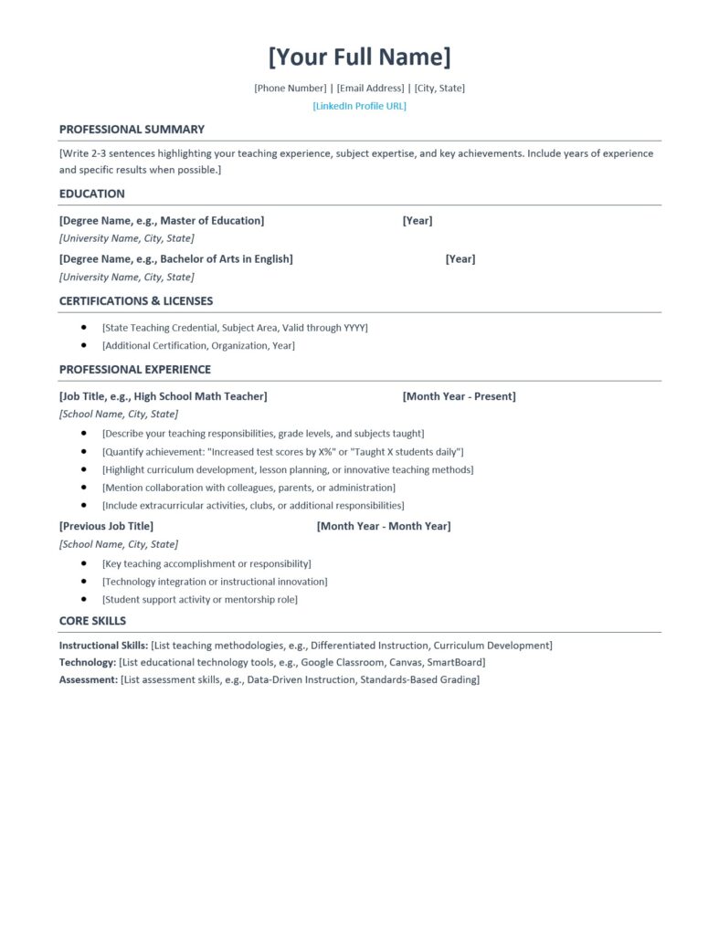 Focus on your most recent 10-15 years of teaching experience. Older positions can be summarized briefly or omitted entirely unless they provide unique qualifications relevant to the position you’re seeking. This keeps your resume focused on current, applicable experience.