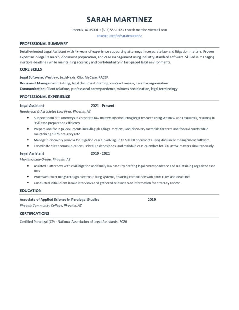 Legal Assistant Resume Example