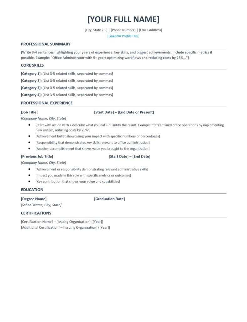 Office Administrator Resume Template: ATS Examples & Writing Guide [2025]