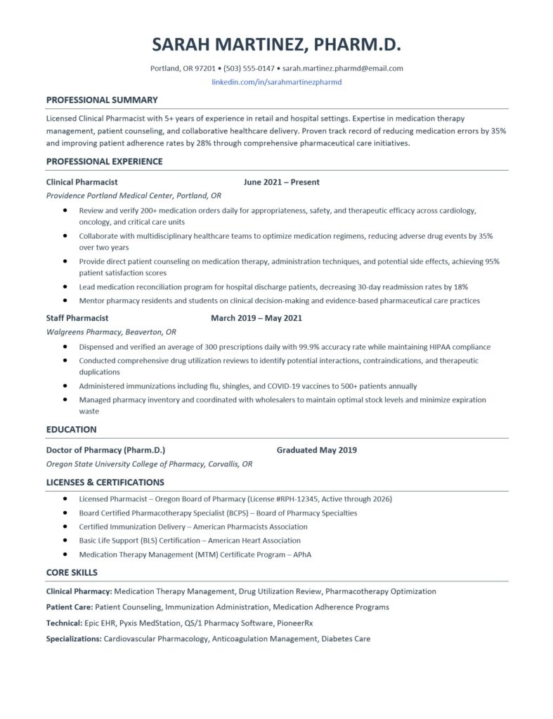 Yes, absolutely. Including your license number saves hiring managers time and immediately verifies your credentials. Format it clearly: “Licensed Pharmacist – Oregon Board of Pharmacy (License #RPH-12345, Active through 2026).” This information is public record and demonstrates transparency.